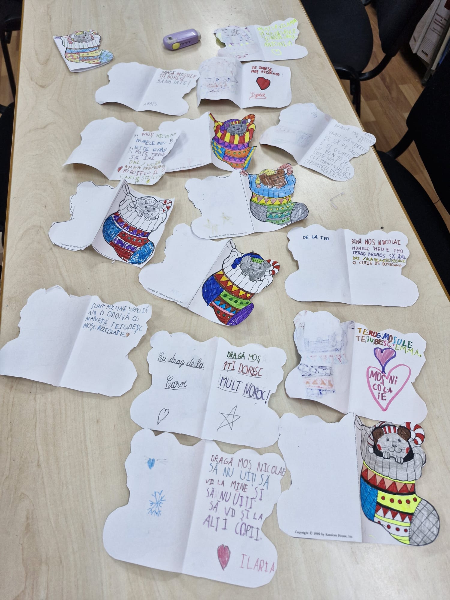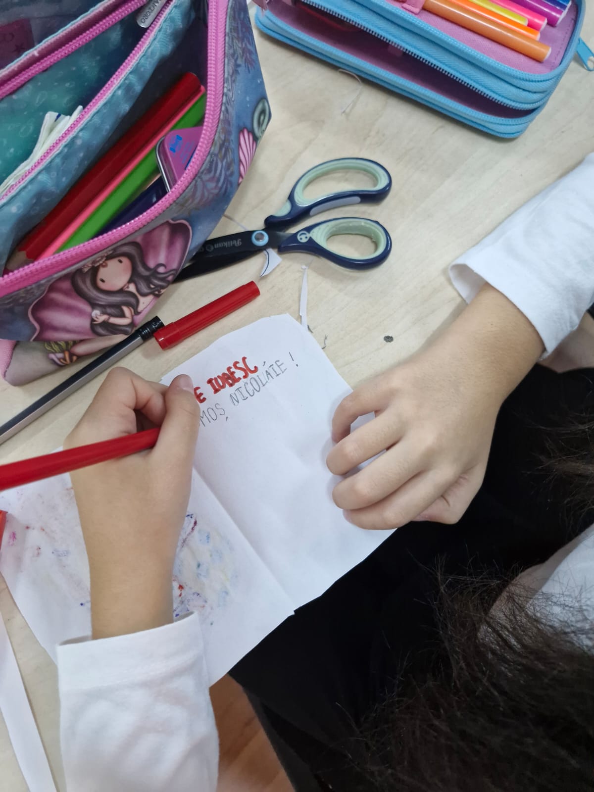 Copiii au urmărit legenda lui Moș Nicolae, descoperind tradițiile și semnificațiile acestei sărbători îndrăgite. Activitatea a continuat cu un moment creativ, în care elevii au confecționat „ghetuța lui Moș Nicolae” și au realizat felicitări tematice. Pe felicitări, cei mici au scris dorințele lor pentru Moș Nicolae lăsându-și imaginația și emoțiile să prindă formă.