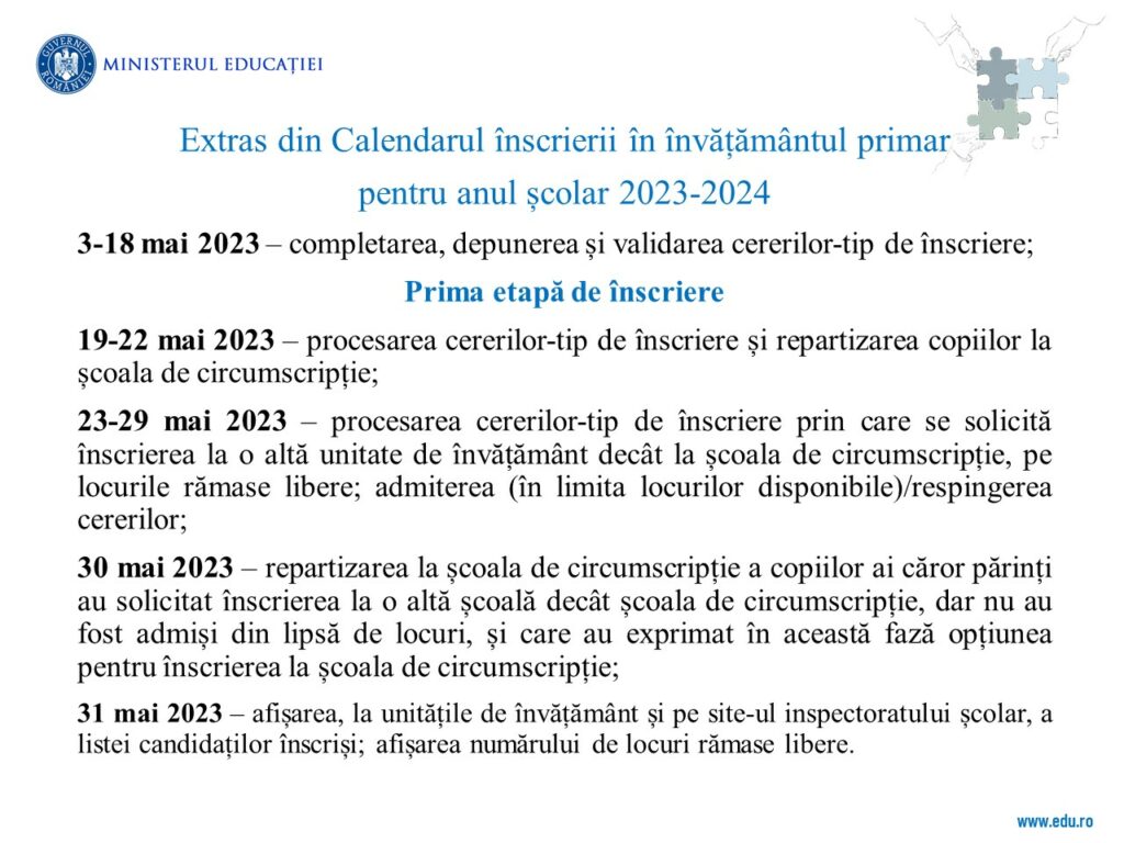 Proiect de educație școlară Erasmus+ B.I.N.E ( Boost Inclusion in Education)February 27, 2023OFERTA EDUCAŢIONALĂ A ŞCOLII GIMNAZIALE NR. 4 RM. VÂLCEA, AN ŞCOLAR 2023-2024March 3, 2023 CALENDAR ÎNSCRIERI CLASA PREGĂTITOARE, AN ȘCOLAR 2023-2024 Post Views: 849 Spread the love Share0
