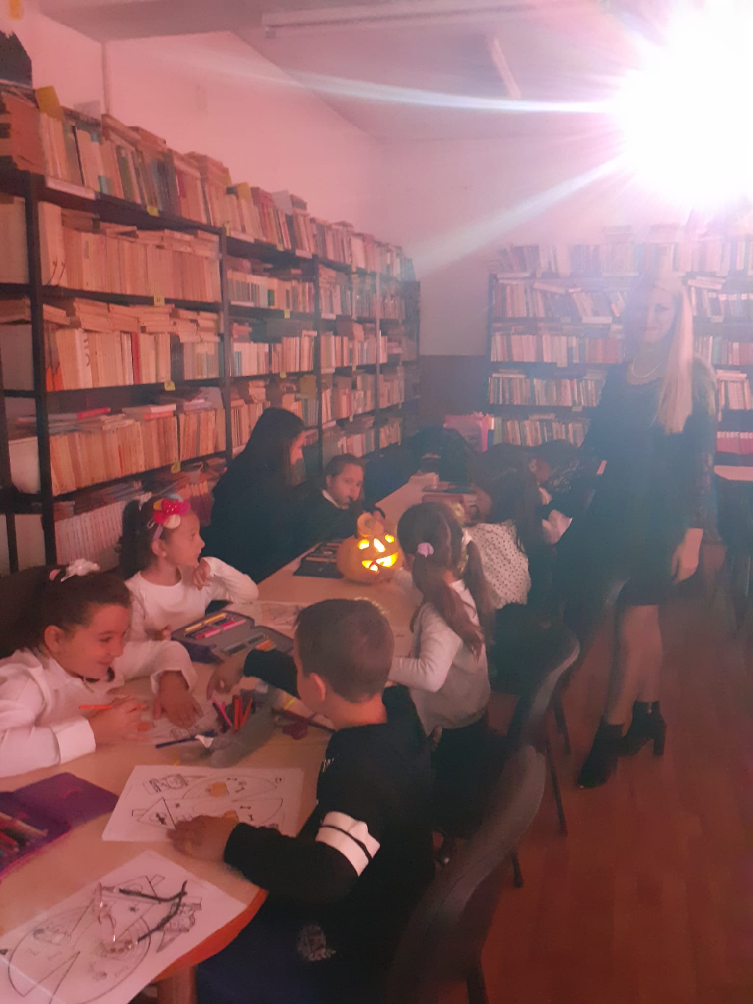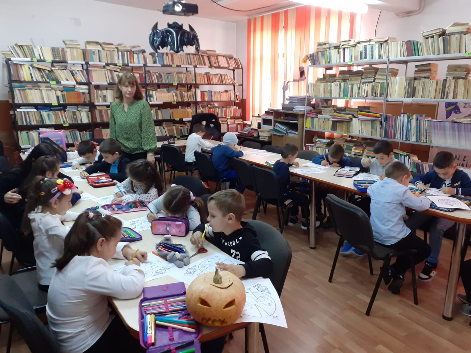 November 16, 2022Cu ocazia sărbătorii de Halloween, elevii clasei Preg A, sub îndrumarea d-nei bibliotecară Ticu Marilena și a d-nei învățător Părăușanu Cristiana, inspirați de decorul de poveste din biblioteca școlii, au realizat atelier tematic în care si-au demostrat talentul de sculptor, dând viață dovlecilor sau talentul picturii, decorând casa vrăjitoarei.