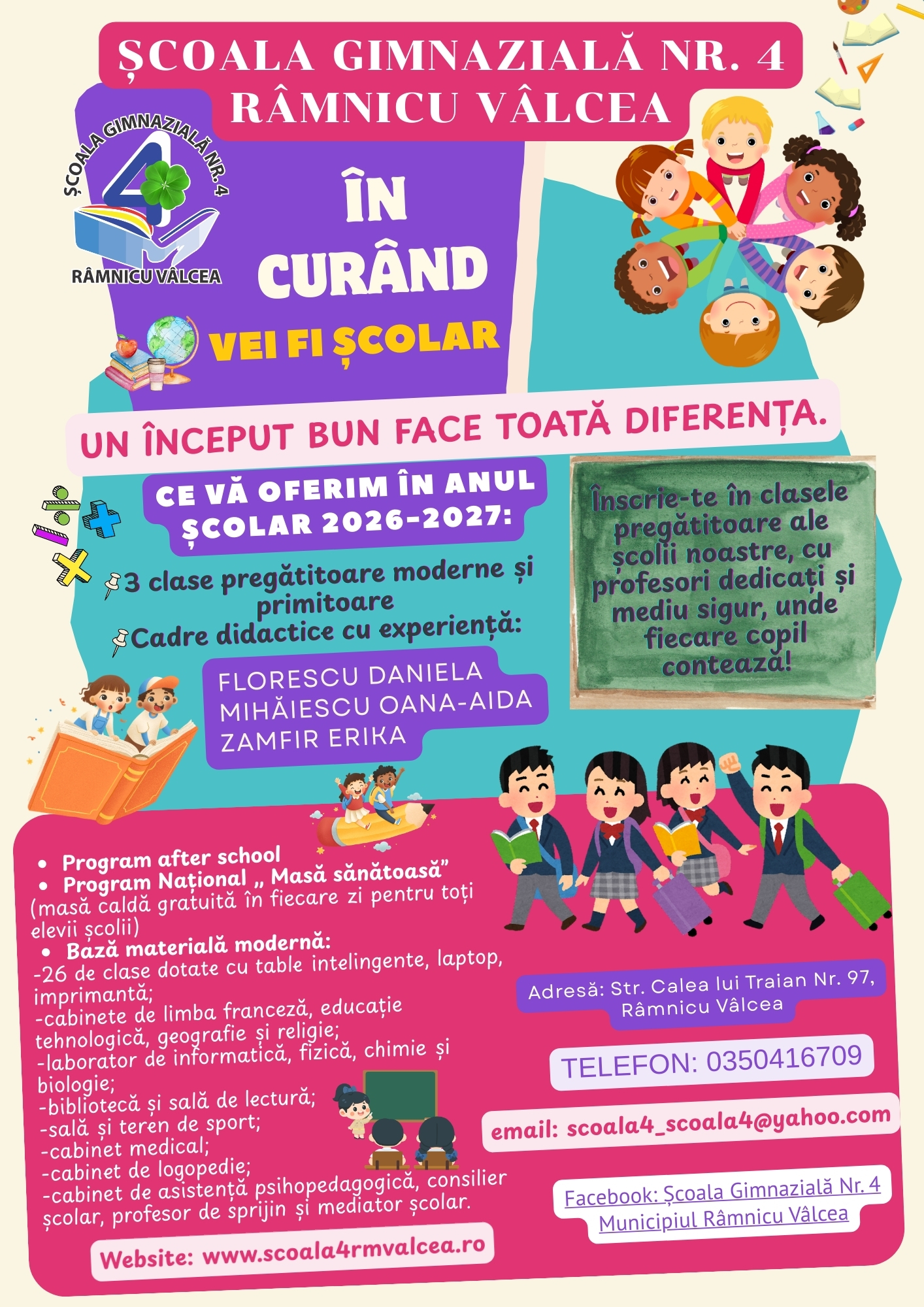 Anunț examen de promovare în grad profesional-Școala Gimnazială Nr. 4 Râmnicu VâlceaFebruary 11, 2026 OFERTĂ ȘCOLARĂ – AN ȘCOLAR 2026-2027 Spread the love Share0